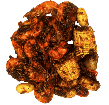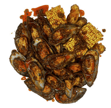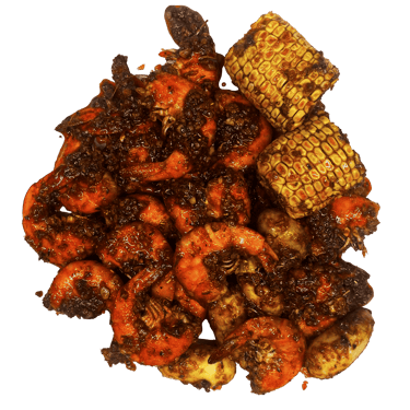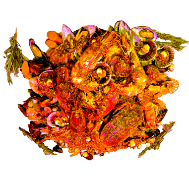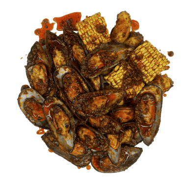 5 Fruits de mer au choix; maïs 6 pcs; saucisses de poulet 6 pcs (halal); pomme de terre 6 pcs; Sauce et niveau de piment au choix.