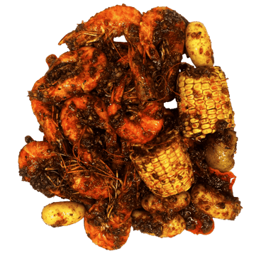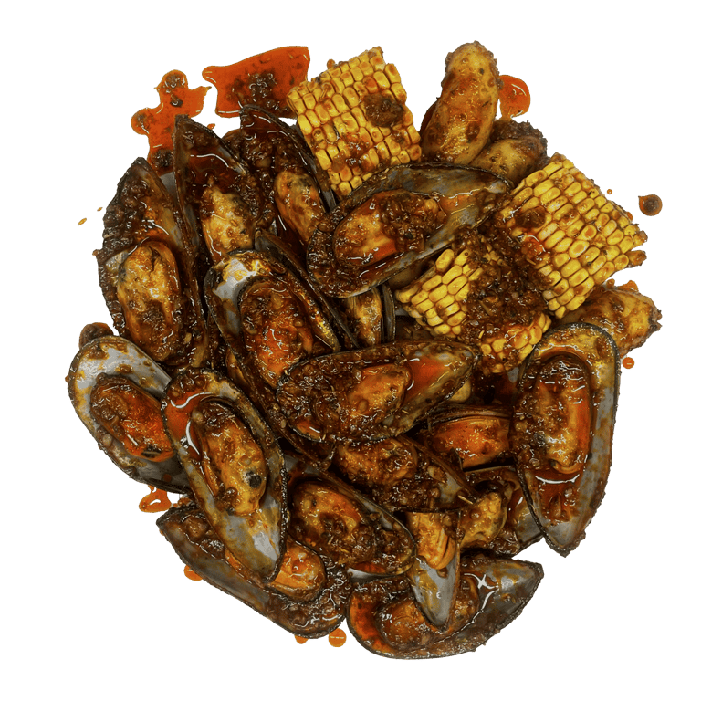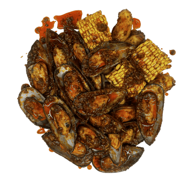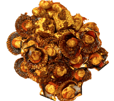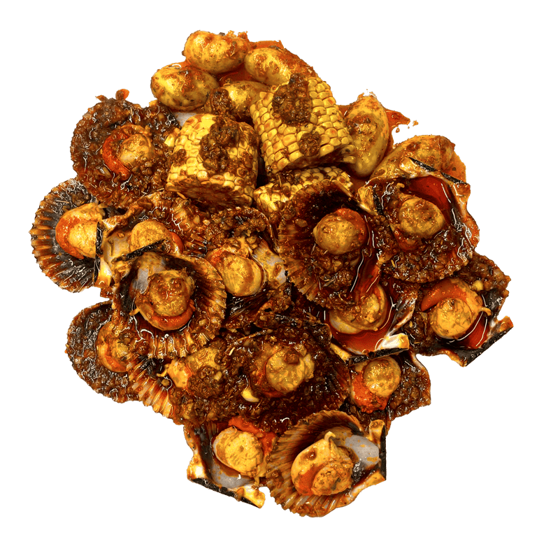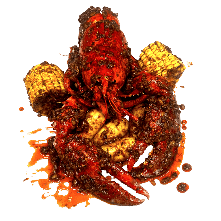 Lobster, Black Tiger Prawns, 4-legged Spider Crab, Langoustine, Scallops, Clams, Shrimp, Crayfish, Crab, Mussels 1/2 shells. Served with corn 8 pcs, chicken sausages 12 pcs, potatoes 8 pcs, fries and fried sweet potatoes; Sauce and pepper level of your choice.